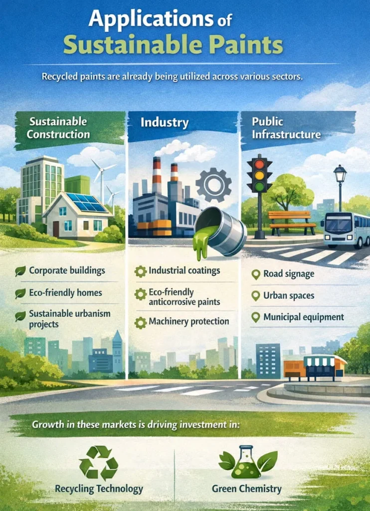 One of the most interesting trends is the development of recycled paints, manufactured from recovered resins, sustainable pigments, and reused materials. This innovation not only reduces the environmental footprint of the industry but also aligns with Corporate Social Responsibility (CSR) policies that many large companies are adopting.